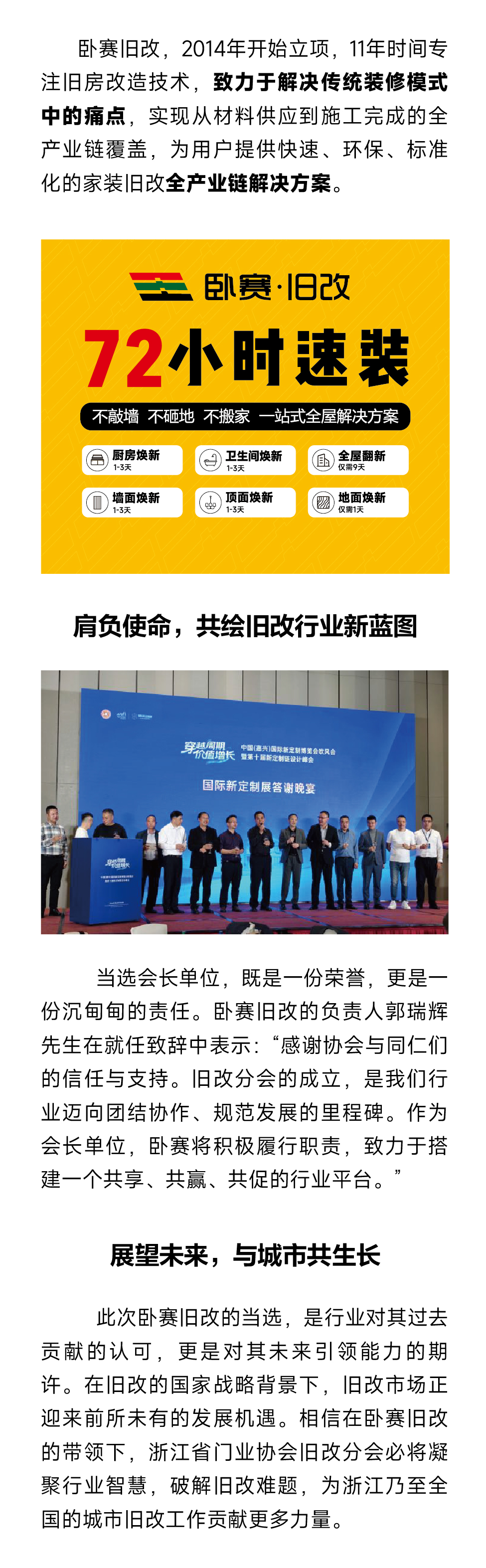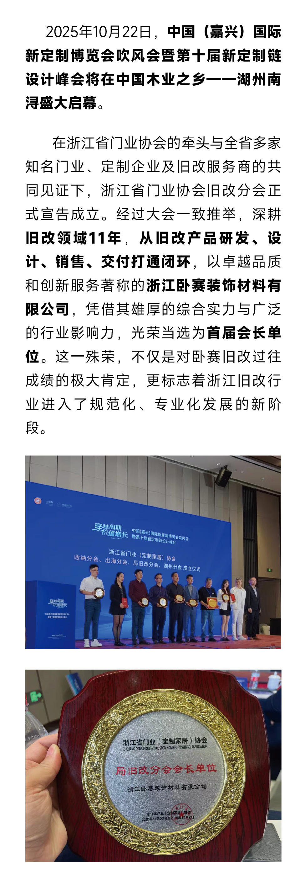 喜报,卧赛旧改当选浙江省门业协会旧改分会会长单位