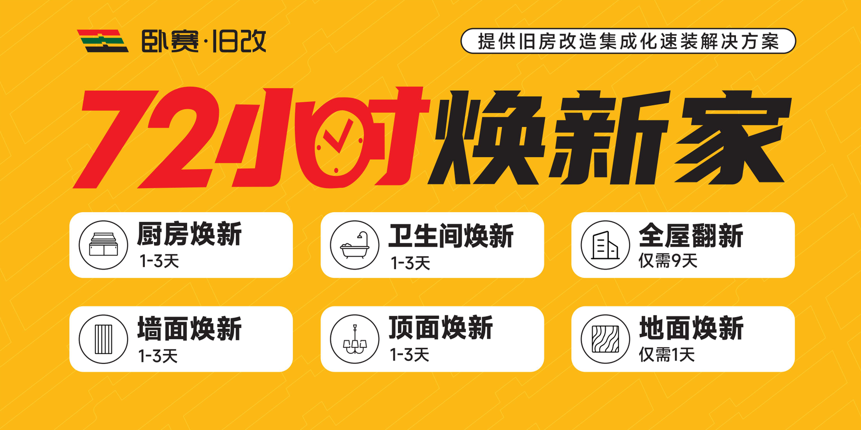 传统旧改项目往往需要1-3个月的时间,业主不仅要承受长时间的施工噪音与环境污染,还要面临无处居住的尴尬。卧赛旧改打破了这一常规,提出使命必达,不砸墙不铲地不搬家,9天完工,迟1天,赔200,按天数倍增”的承诺。